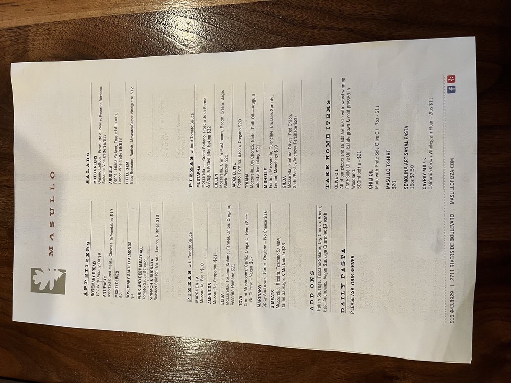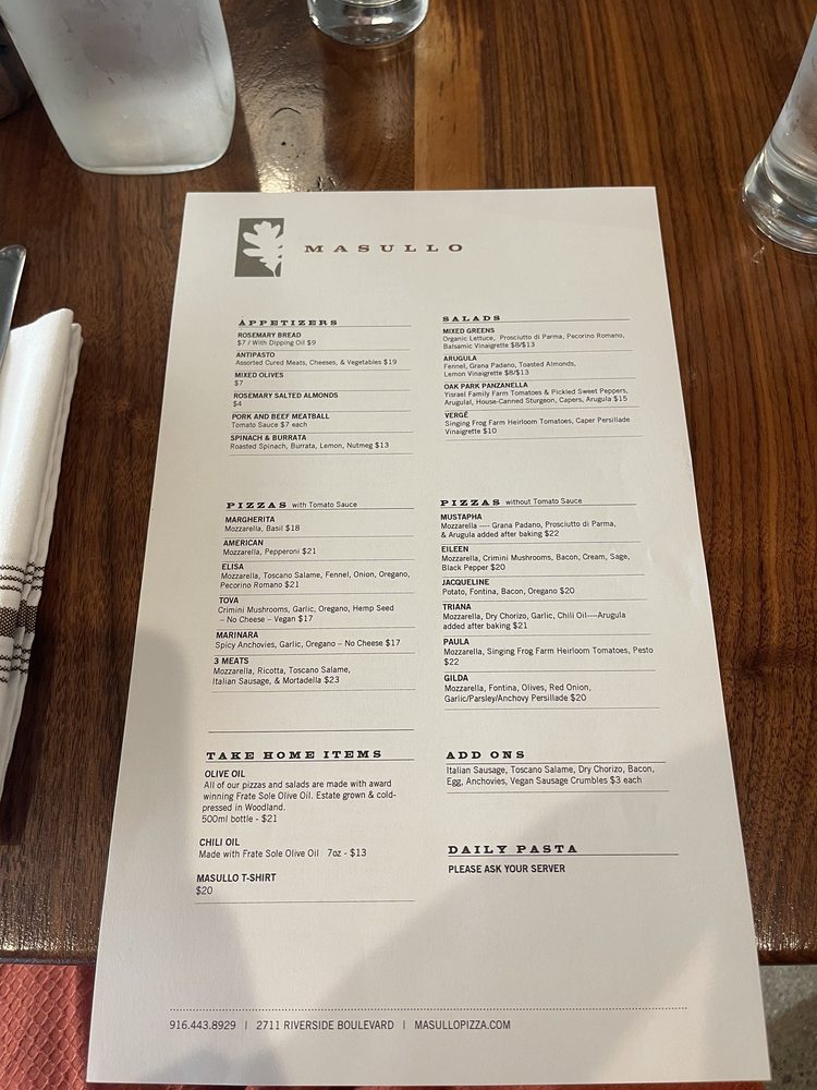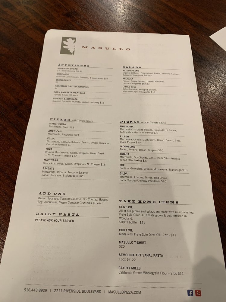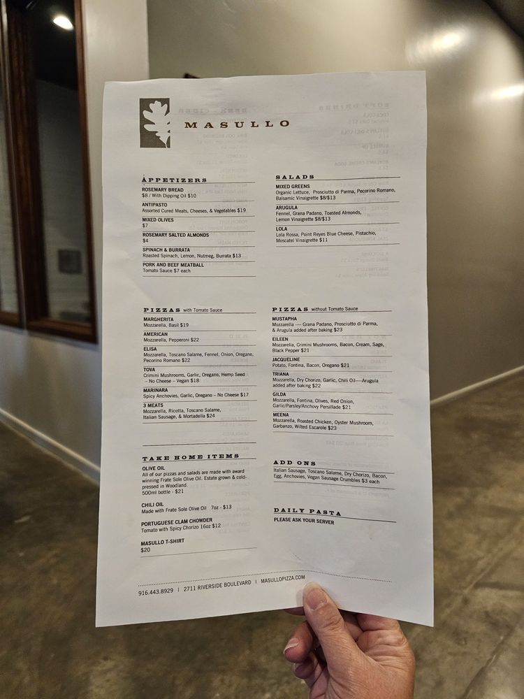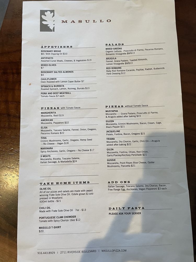 Masullo, located on 2711 Riverside Blvd in Sacramento, offers a variety of options including takeout, reservations, delivery, vegan and vegetarian choices, and wheelchair accessibility. With a casual atmosphere, Masullo provides a welcoming environment for all diners. The menu features delicious pizzas like the Elisa and 3 meat pizza, as well as enticing appetizers such as meatballs and burrata. Customers rave about the excellent thin crust pizza and unique toppings that leave you feeling satisfied but not overly full. The staff is friendly and efficient, making every dining experience enjoyable. The ambiance is spacious and open, perfect for gatherings with friends and family or for a cozy dinner for two. Masullo's commitment to quality ingredients and attention to detail shines through in every dish, making it a must-visit spot for pizza lovers in Sacramento.